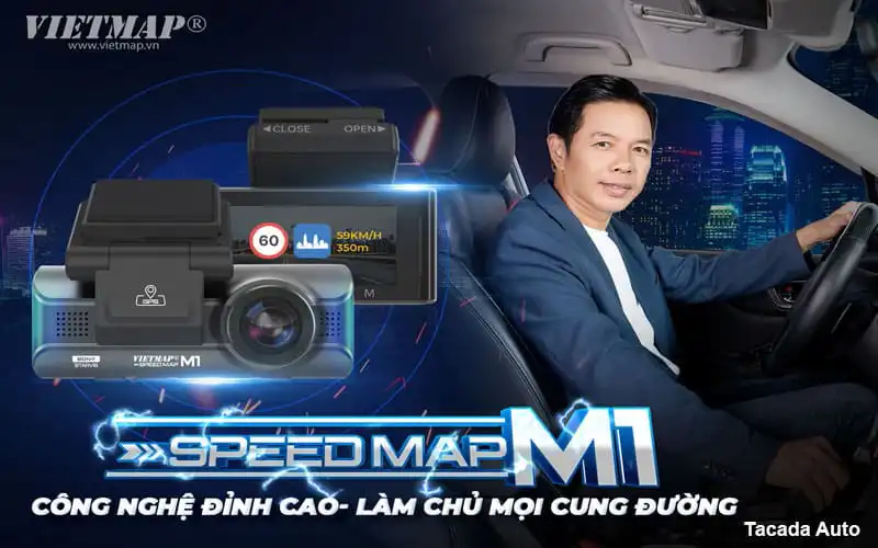 VIETMAP SpeedMap M1 dòng camera hành trình VIETMAP đầu tiên và duy nhất trên thị trường trang bị tính năng luôn hiển thị tốc độ giới hạn của tuyến đường di chuyển khi lái xe, đồng thời cảnh báo bằng hình ảnh & giọng nói khi tốc độ di chuyển cao hơn tốc độ cho phép.