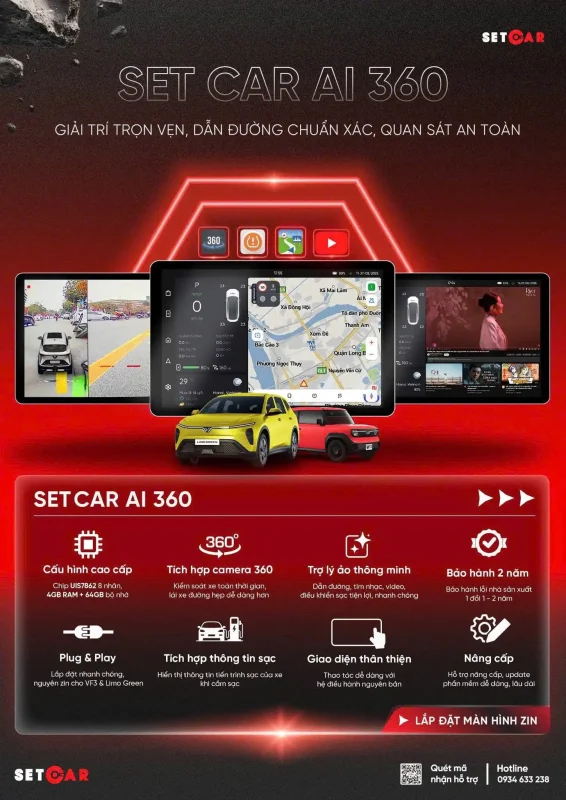 Việc trang bị màn hình SetCar AI 360 cho VinFast Limo Green tại An Giang là lựa chọn tối ưu để biến chiếc xe trở nên hiện đại, thông minh và an toàn hơn trong mọi hành trình. Đây không chỉ là màn giải trí thông thường mà còn là “trợ thủ công nghệ” hỗ trợ lái xe toàn diện.