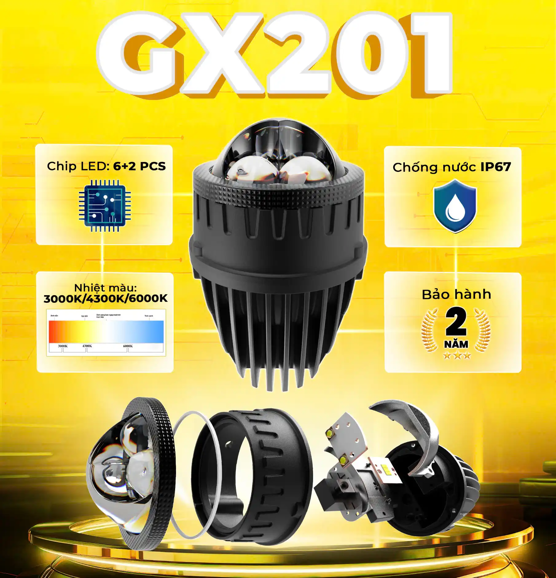 Với những ưu điểm vượt trội như vậy, đèn bi gầm GX201 là lựa chọn hàng đầu cho việc nâng cấp hệ thống đèn chiếu sáng của xe.