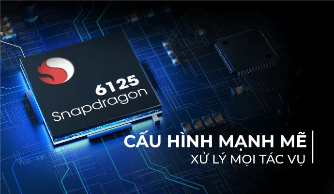 Vi xử lý cao cấp: Chip Qualcomm Snapdragon 6125 8 nhân mạnh mẽ.