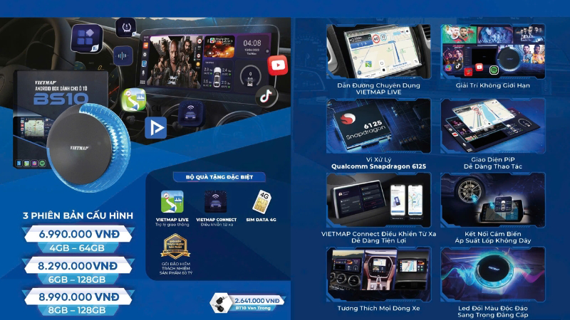 Android Box VIETMAP BS10 chính là giải pháp nâng cấp hoàn hảo nhất hiện nay. Thiết bị này biến màn hình zin của xe bạn thành một chiếc máy tính bảng Android đa năng, mở ra cả thế giới giải trí và tiện ích mà không cần thay thế bất cứ bộ phận nào của xe.