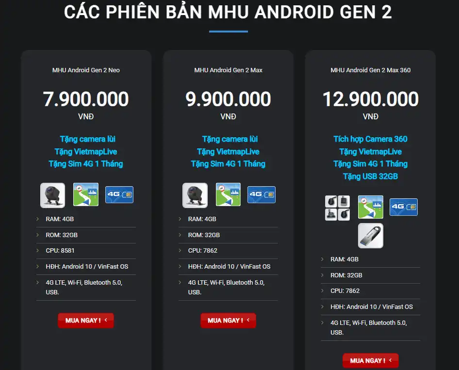 MHU Android Gen 2 Max 360 – Giá tham khảo: 12.900.000đ (kèm camera 360 toàn cảnh)
